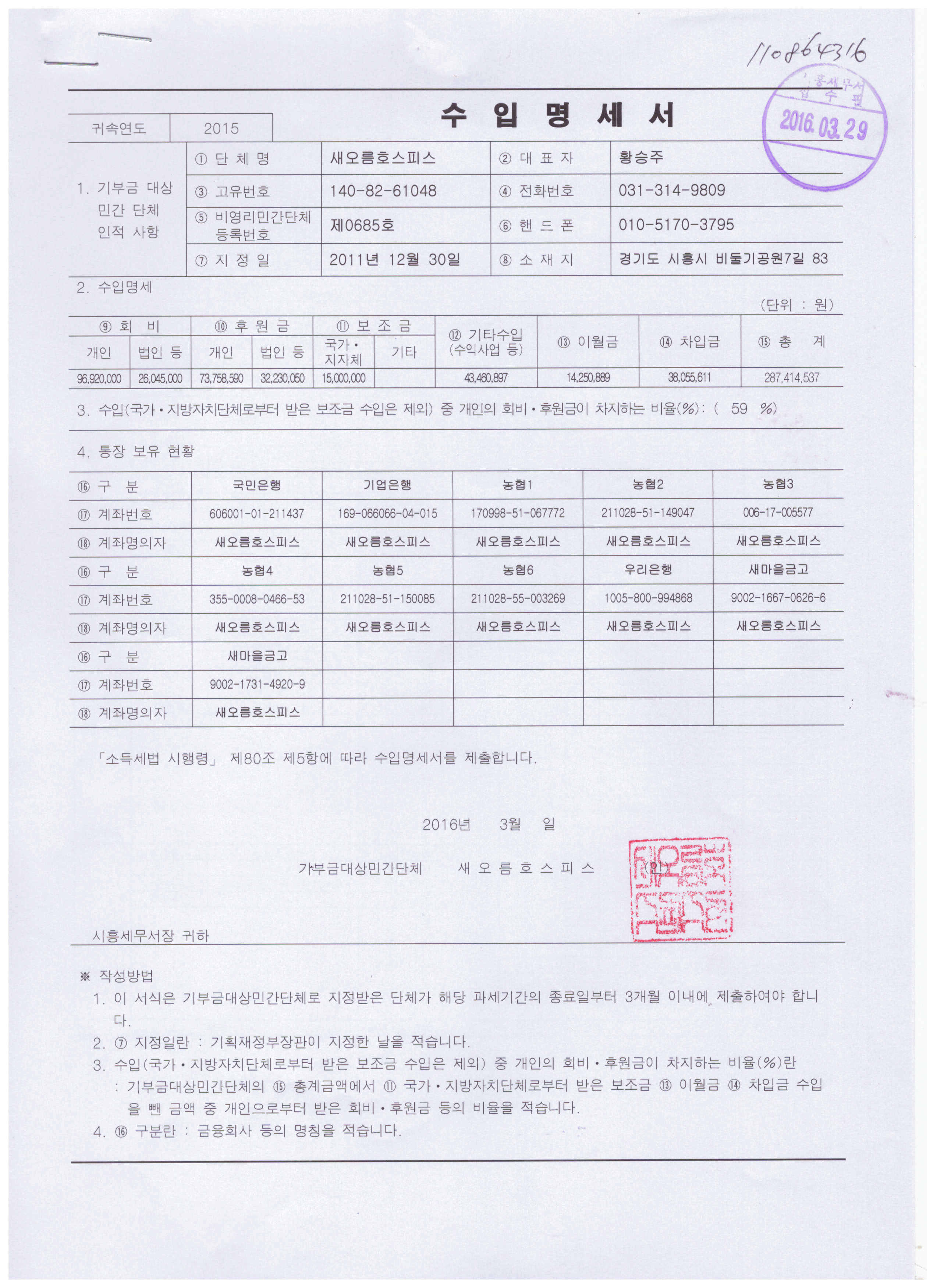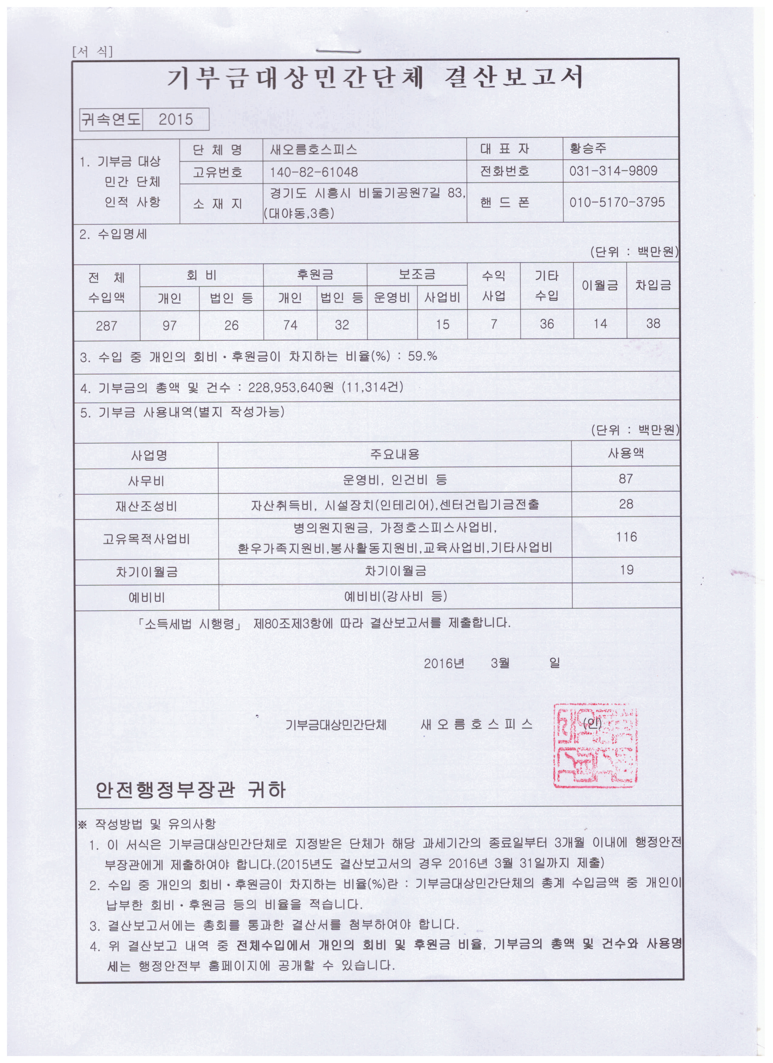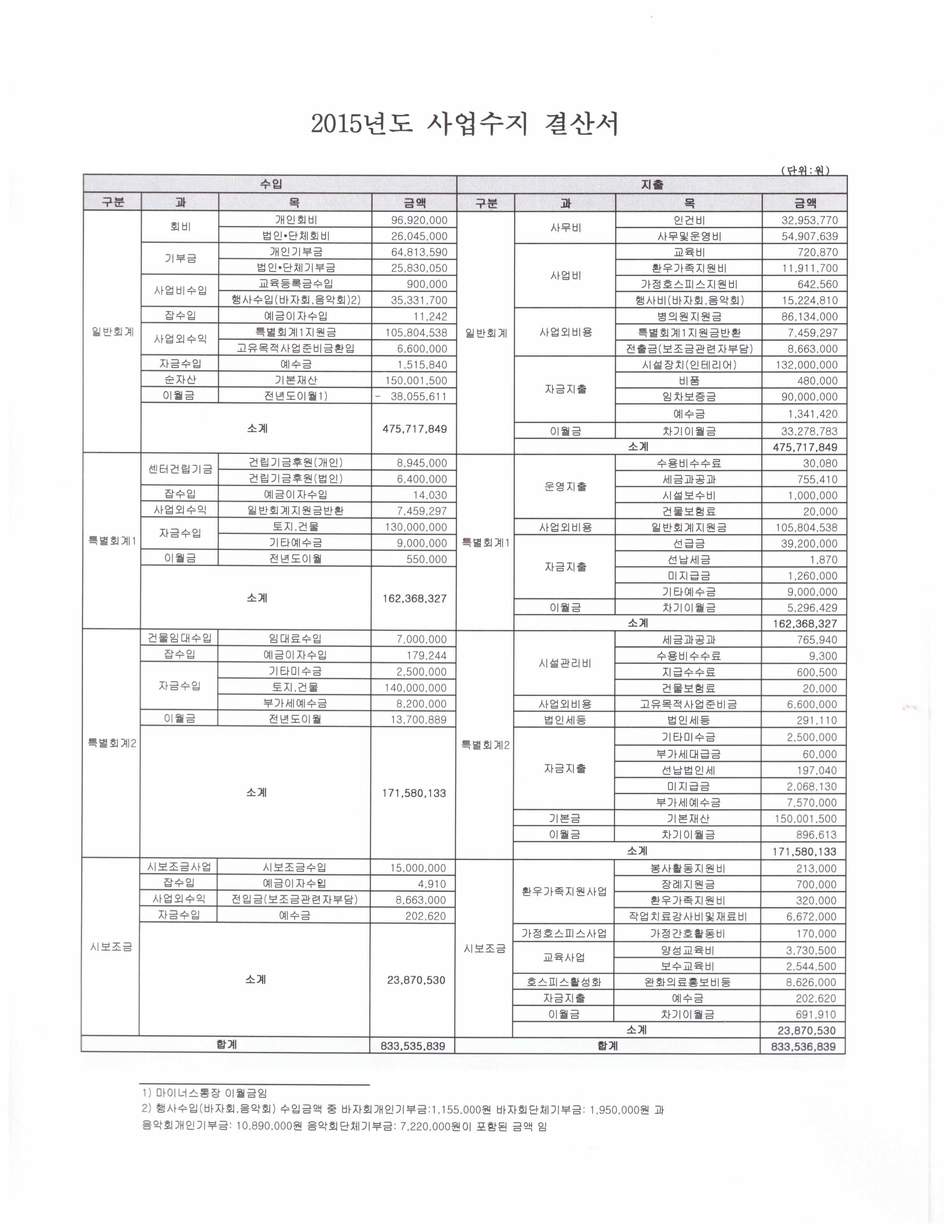 ◆ 2015년 연간기부금 모금액 및 활용실적 공개 ◆